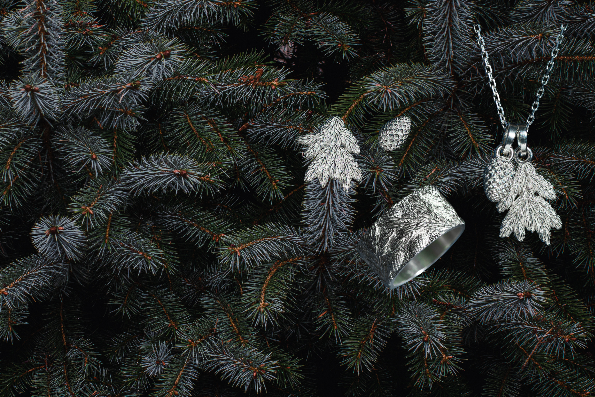 Карпати дарують той спокій, якого так бракує в місті: чисте повітря, тиша смерекового лісу, впевненість гір - тут відчуйте їх у сережках, кулонах та каблучках "Карпатська смерека".