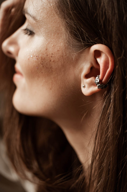 Кафф «Зв'язок» (сережка-пусет "Куля" (3 мм) для другого вушка в комплекті)