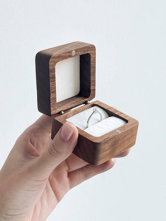 Дерев'яна коробочка для однієї каблучки (колір грецький горіх)