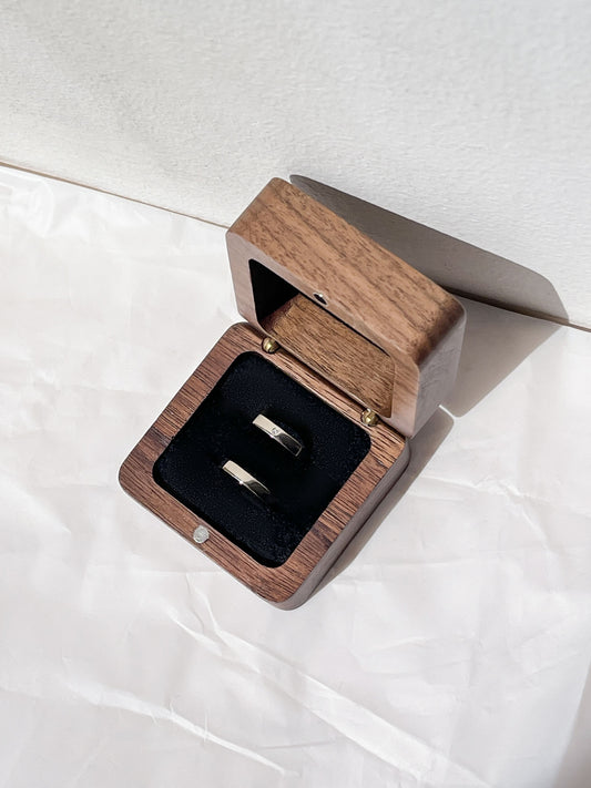 Дерев'яна коробочка для двох каблучок (колір грецький горіх)