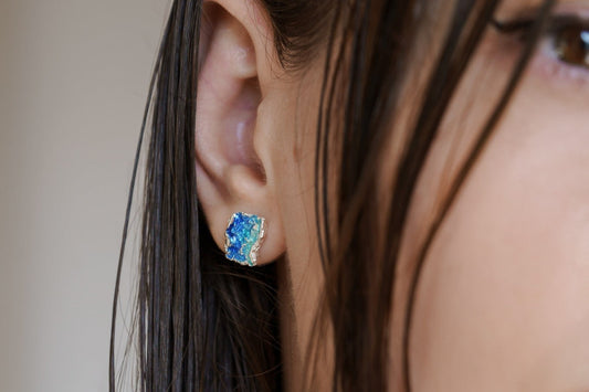 Сережки-пусети «Хвиля» сині (8х10 мм)