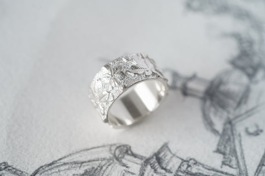 Каблучка «Кленова кора» з чорнінням (10 мм)