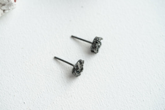 Сережки-пусети «Коло» (8 мм) з чорною емаллю