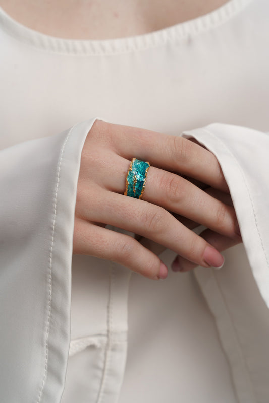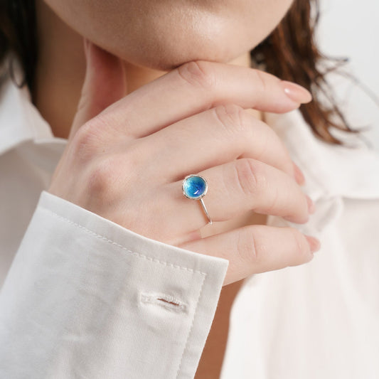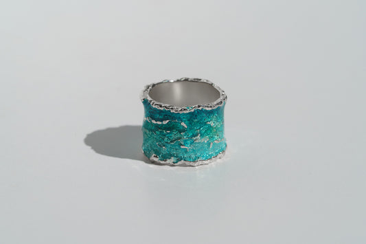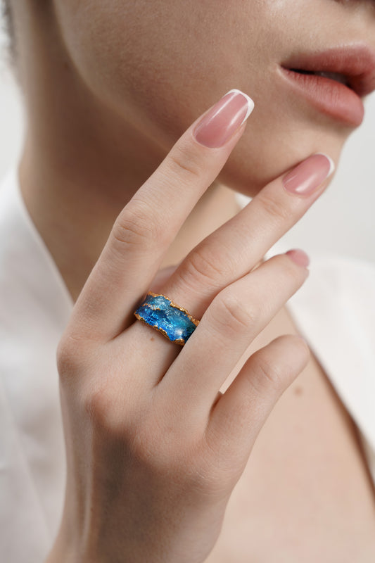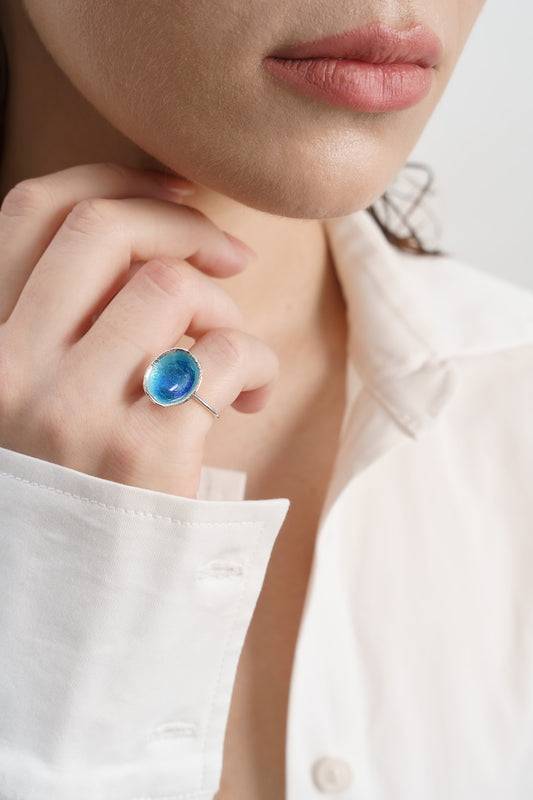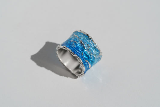 Каблучка «Шторм» синя (13 мм) з чорнінням