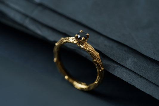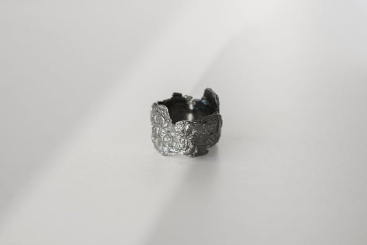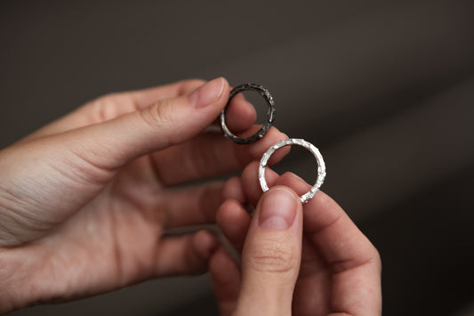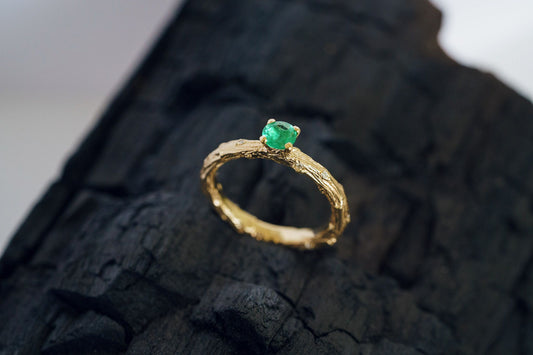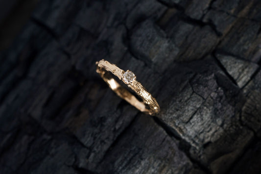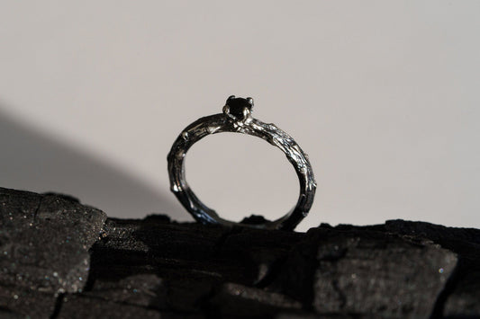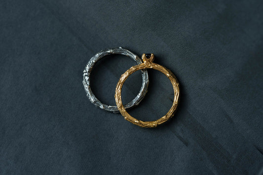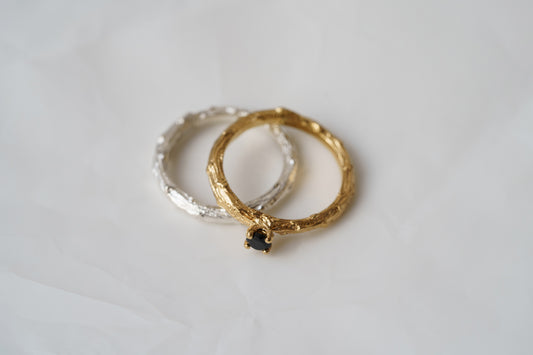 Прикраси з цієї колекції майже в буквальному сенсі були народжені в лісі. Кожна каблучка - це відбиток справжньої деревної кори, яку я знайшла в дендрологічному сирецькому парку, неподалік від того місця, де я раніше жила. Взагалі я люблю робити щось "по справжньому", тобто не імітувати текстуру за допомогою інструментів, а робити відбиток з чогось реально існуючого.