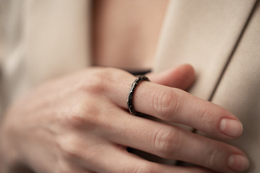 Каблучка «Дубова кора» з чорнінням (10 мм)