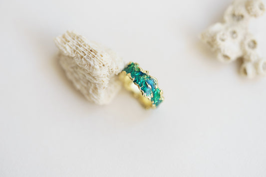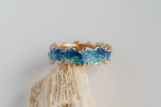 Спочатку ми використовували лише гарячу ювелірну емаль і виготовляли сережки, каблучки та кулони лише у сріблі, бо на біле золото вона не кладеться, а на жовтому сильно змінювала відтінок. Та згодом ми спробували фотополімерну емаль, яка підходить для золота і прикраси набули ще більш особливих відтінків.