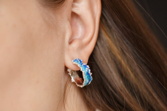 Сережки-конго «Хвиля» (6 мм/20 мм) сині