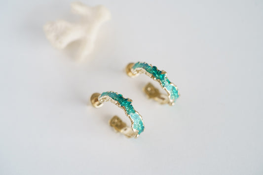 Сережки-конго «Хвиля» (4 мм/15 мм) смарагдові