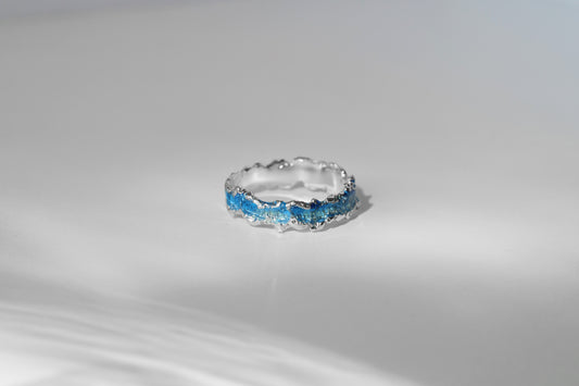 Каблучка «Хвиля» синя (6 мм) з чорнінням