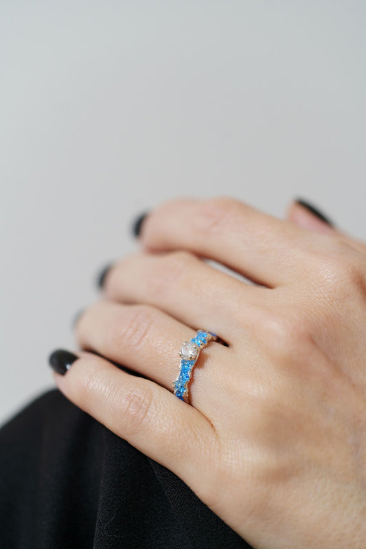 Каблучка «Хвиля» синя (камінчик 4 мм)