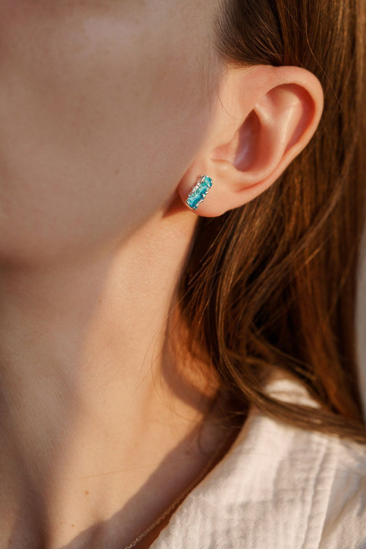 Сережки-пусети «Хвиля» сині (8х10 мм)