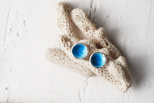 Сережки-диски «Хвиля» сині (15 мм)
