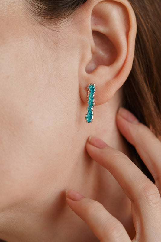Сережки-пусети «Бриж на воді» міні смарагдові