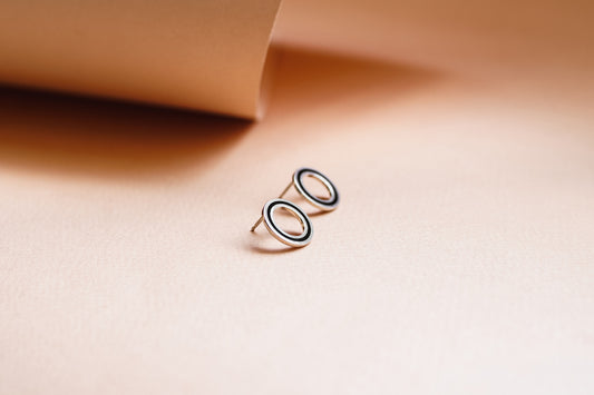 Сережки «Циклічність» (30 мм) з чорною емаллю