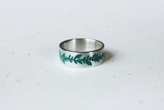 Знижка 20%Каблучка «Гілка» (7 мм) з смарагдовою емаллю