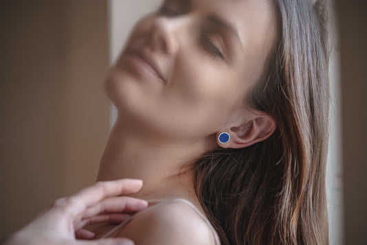 Сережки-пусети «Коло» (12 мм) з синьою емаллю