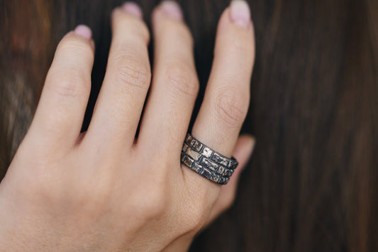 Каблучка «Львівська бруківка» з чорнінням (10 мм)