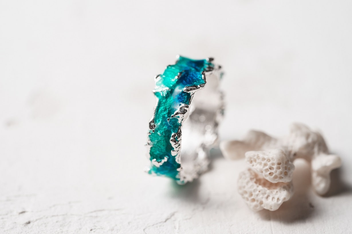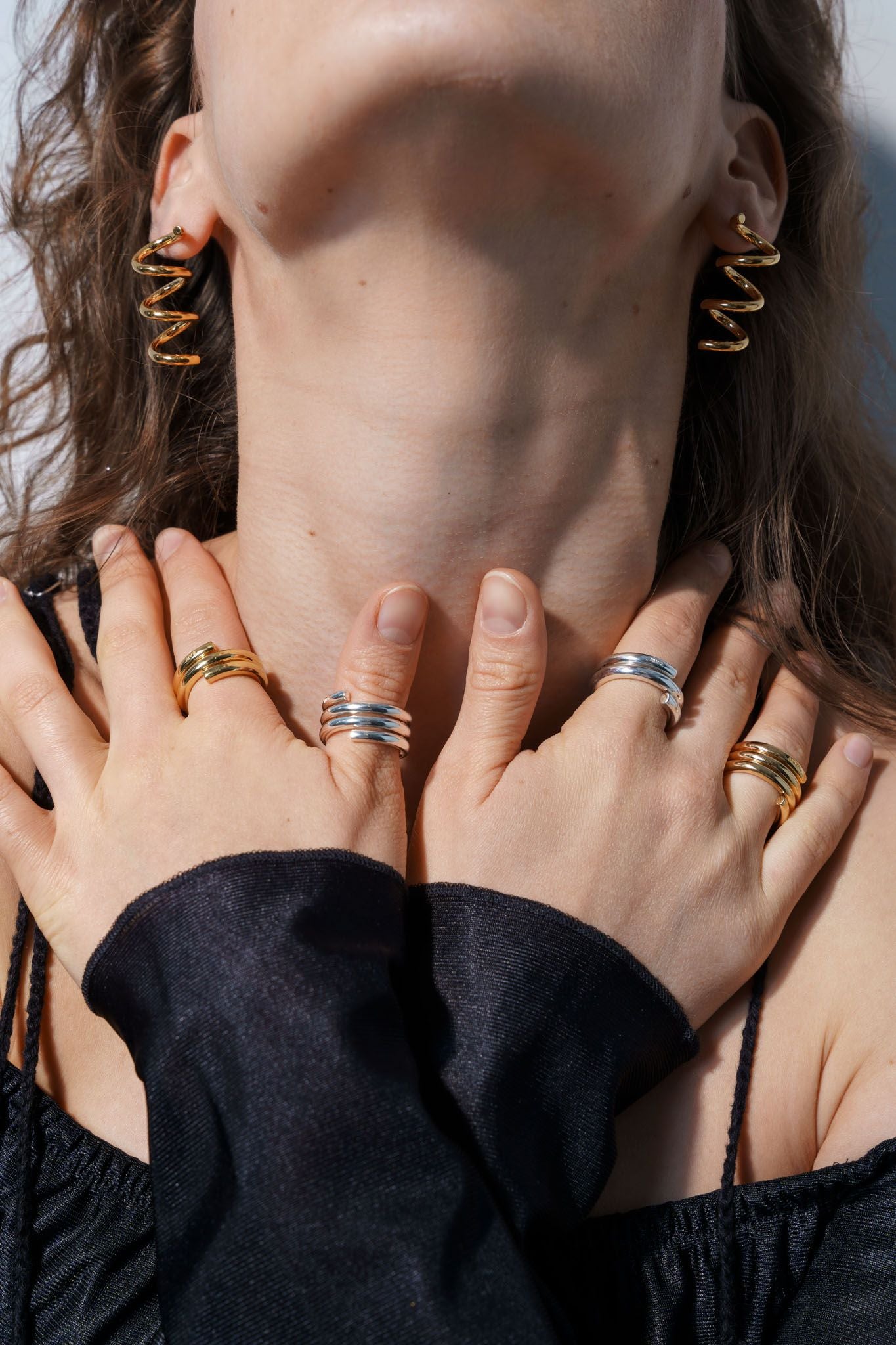 Масивні каблучки з незвичайною текстурою підкреслять твою унікальність та сміливість. Сміливість бути собою і обирати те, що приносить справжнє задоволення. Носити те, що хочеться носити. Я вважаю, що коллекція «КОЛОТИЙ ЛІД» про почуття та прояв себе в цьому світі, про сміливість і внутрішню велич.