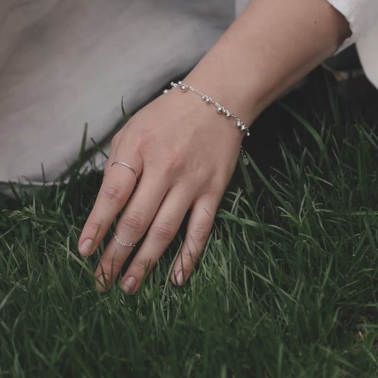 Браслет «Розсип кульок» — елегантна прикраса, що складається з кульок різного розміру (3, 4 та 5 мм), які створюють ефект ніжного розсипу. Цей дизайн надає браслету динамічності та м’якого блиску, що робить його чудовим акцентом для будь-якого образу. Браслет легко поєднується з іншими прикрасами, підкреслюючи вашу індивідуальність і стиль.