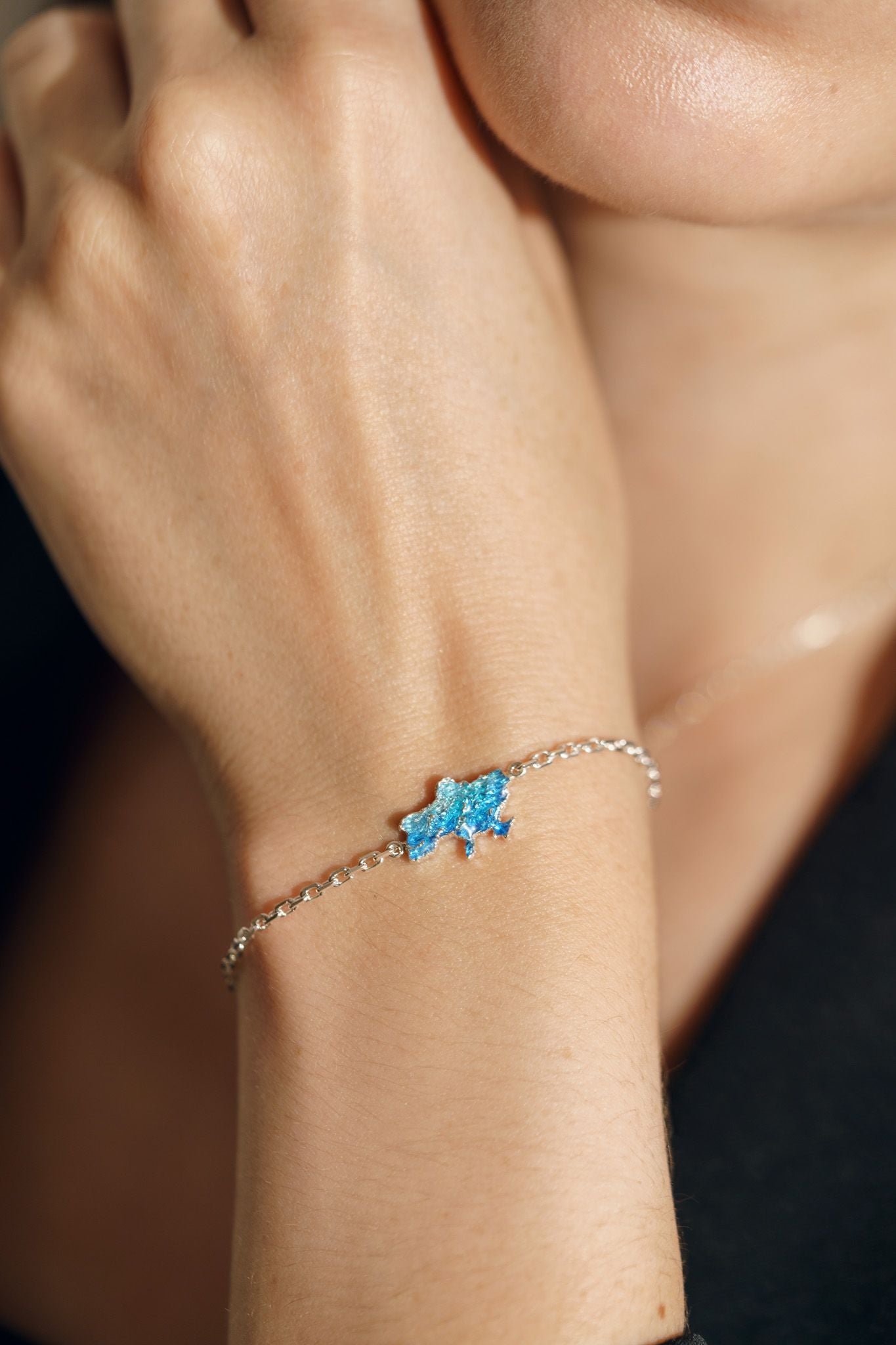 Браслет «Єдина» (15 мм) рельєфний з емаллю — символічна прикраса ручної роботи зі срібла або золота. У центрі дизайну — рельєфна мапа України, оздоблена яскравою емаллю, що втілює єдність, силу та любов до рідної землі. Витончений контраст металу й кольору створює гармонійний баланс між сучасним стилем і глибоким змістом. Цей браслет стане не лише стильним аксесуаром, а й особистим символом гордості та зв’язку з Україною.
