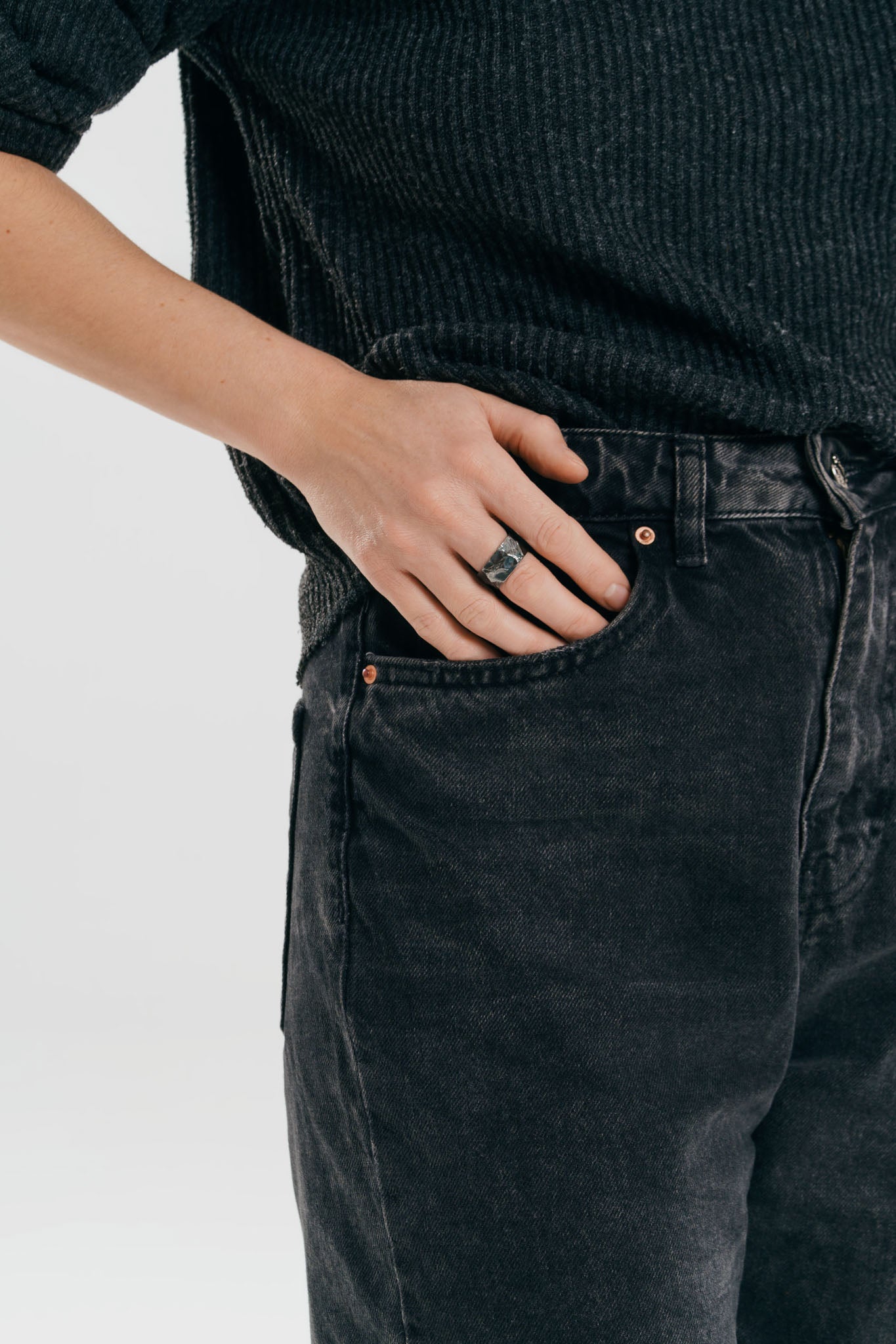 Кільце «Антрацит Донецького вугільного басейну» з чорнінням (10 мм) — це масивна й виразна прикраса, що втілює силу та глибину. Текстура каблучки натхненна структурою антрациту — символу стійкості, енергії та міцності української землі.