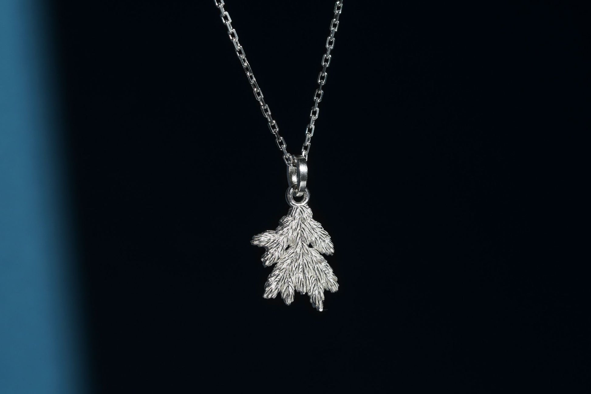 Цей кулон несе в собі теплоту лісових стежок, тихий шелест вітру між верхівками та відчуття спокою, яке дарують Карпати. Він нагадує про силу природи, стійкість і коріння, що завжди тримають нас у рівновазі. Завдяки своїй виразній формі та гармонійним пропорціям кулон стане ніжним акцентом у будь-якому образі — від лаконічного щоденного до особливого святкового.