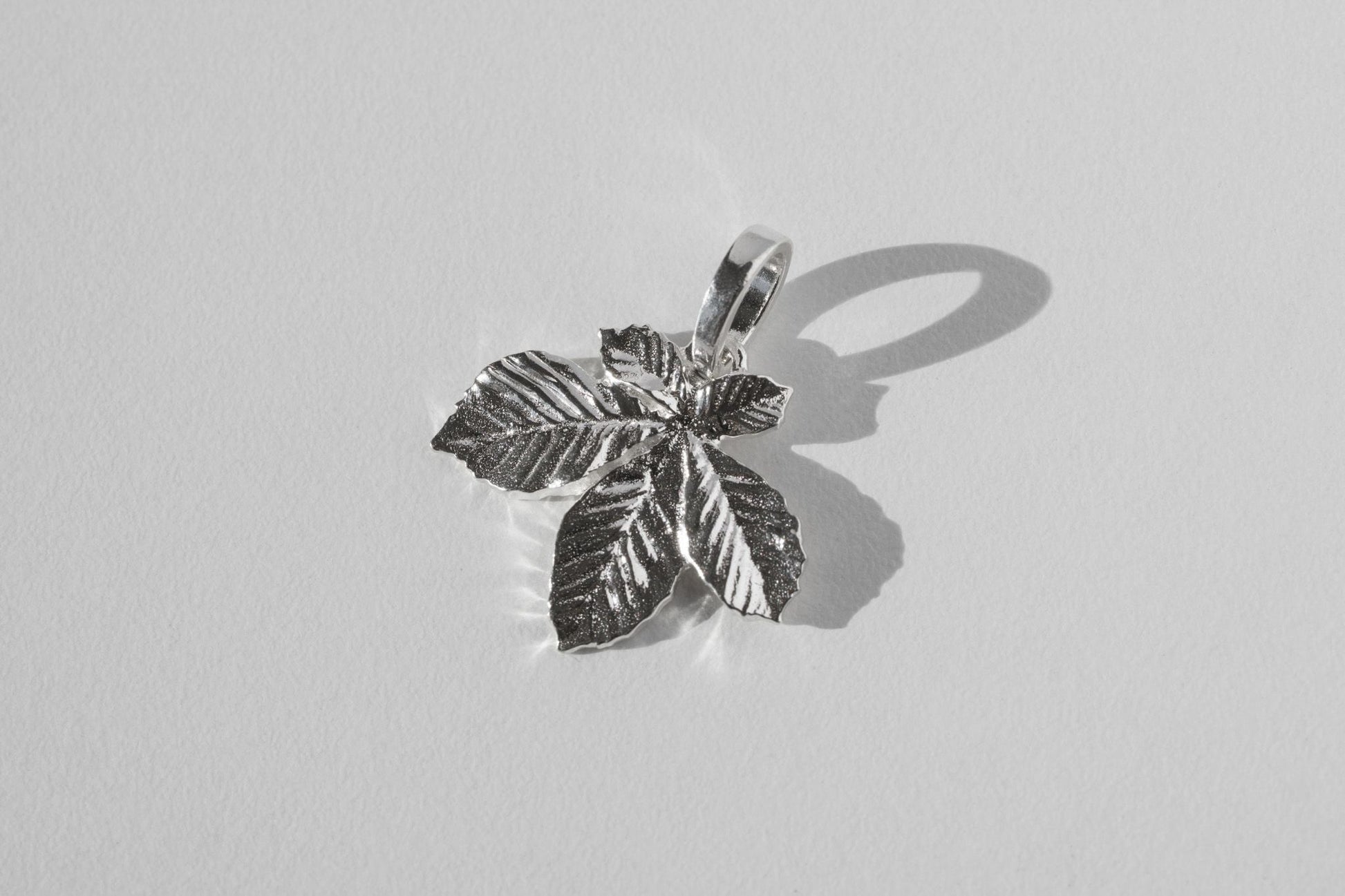 Підвіска «Лист каштану» (20 мм) світлий — символ Києва, втілений у сріблі чи золоті. Її фактурна поверхня з тонкими прожилками передає природну красу справжнього каштанового листка — знаку міста, де кожна вулиця дихає історією.