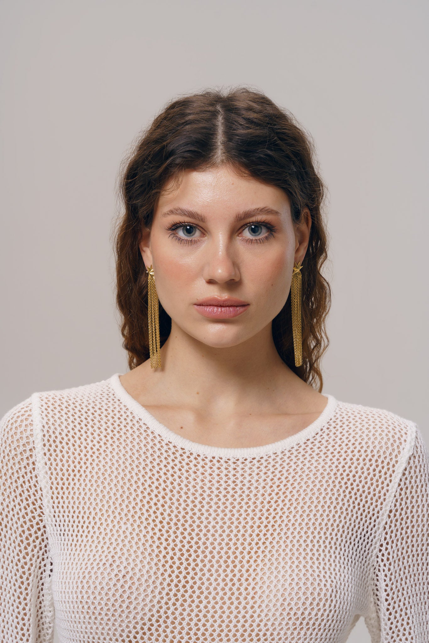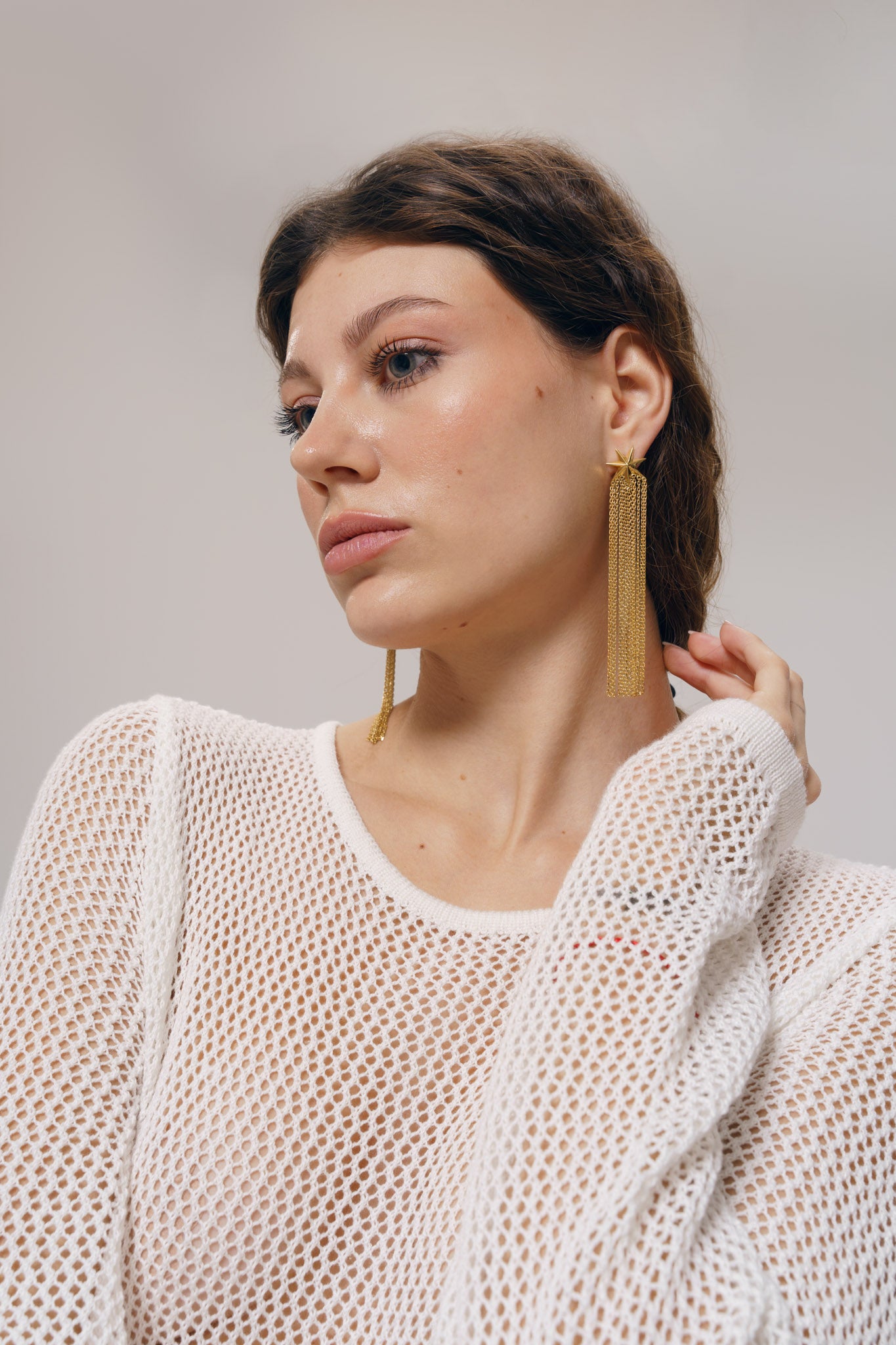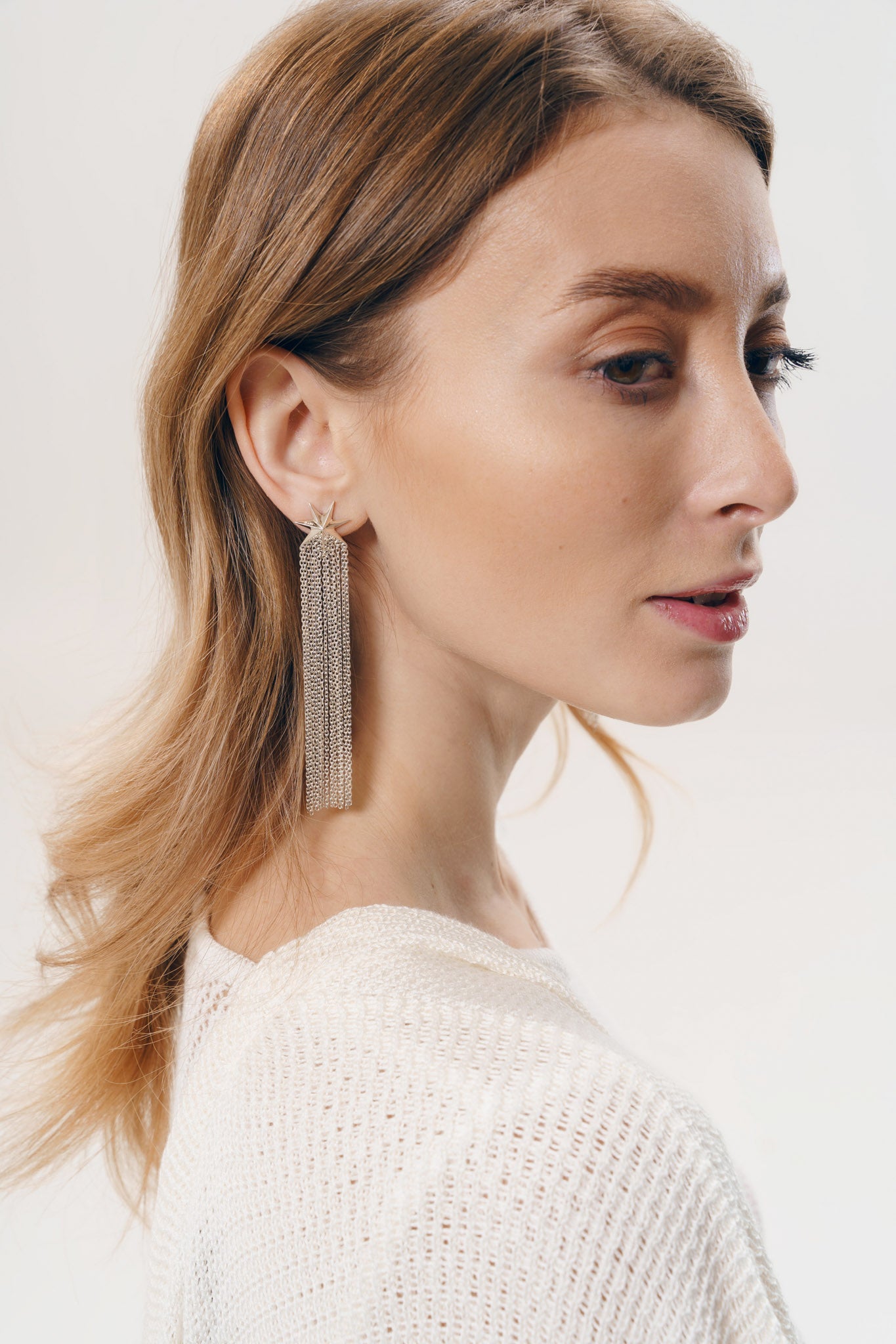 Сережки «Комета» з «хвостом» довжиною 80 мм — виразний і елегантний аксесуар, що нагадує про красу небесних явищ. Довгий хвіст комети додає сережкам витонченого руху та створює граціозний силует. Ця прикраса стане яскравим акцентом для сміливих і стильних образів.