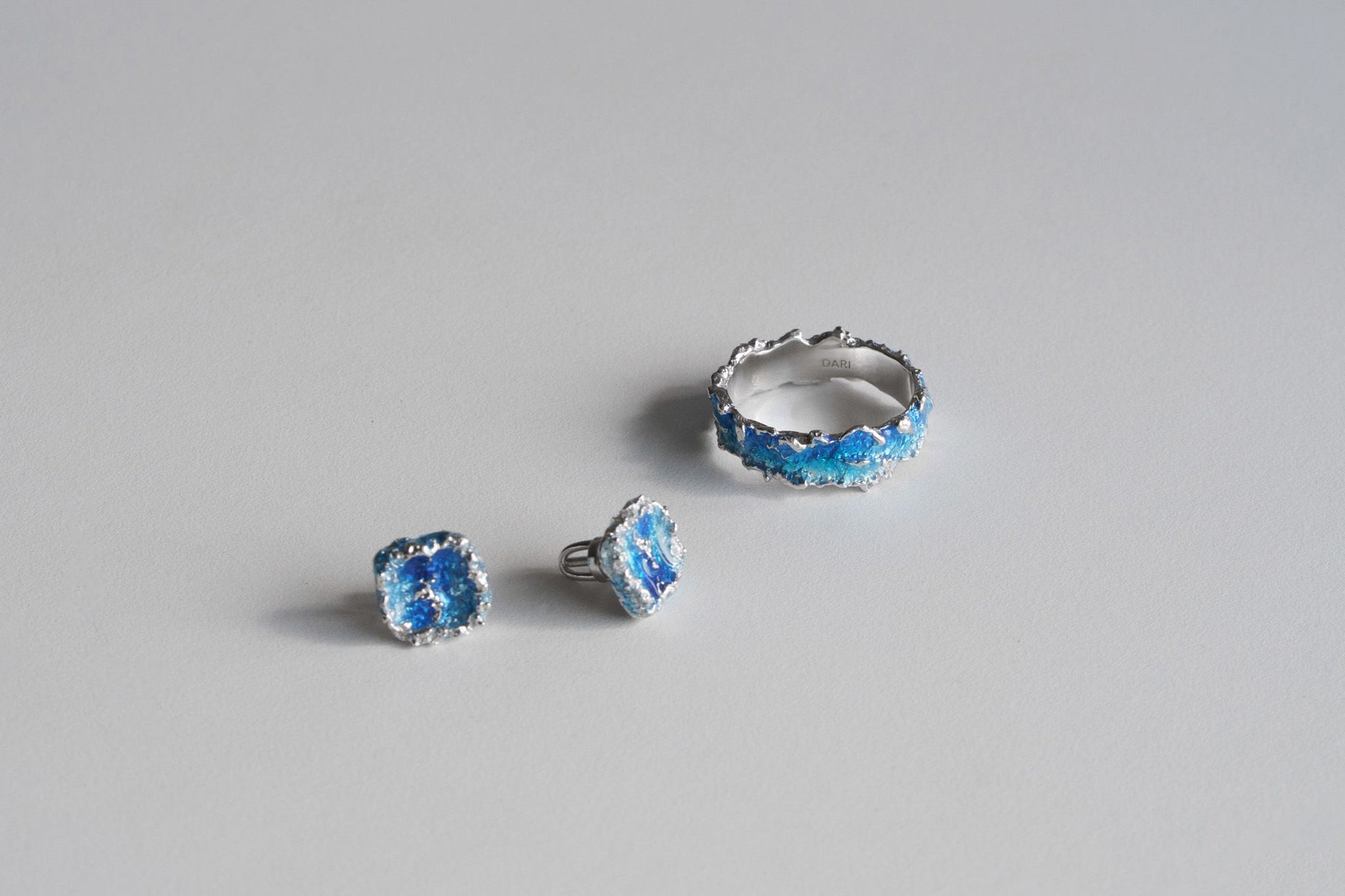 Сережки «Шторм» сині– витончені прикраси, що втілюють силу та динаміку стихії в компактному форматі. Їхні лаконічні лінії зберігають енергію хвиль, додаючи образу стильного акценту. Ідеальні для щоденного носіння, вони підкреслюють характер і елегантність, поєднуючи мінімалізм і потужність природи.